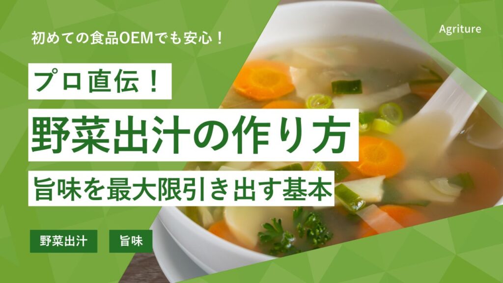 野菜出汁とは、野菜に含まれる旨味と香りをじっくりと引き出した出汁のことです。動物性原料を使わずに深みのある味わいを生み出せるのが特徴で、玉ねぎ、にんじん、セロリ、キャベツ、長ねぎ、きのこ類など、さまざまな野菜の持つアミノ酸や糖類が溶け出... -